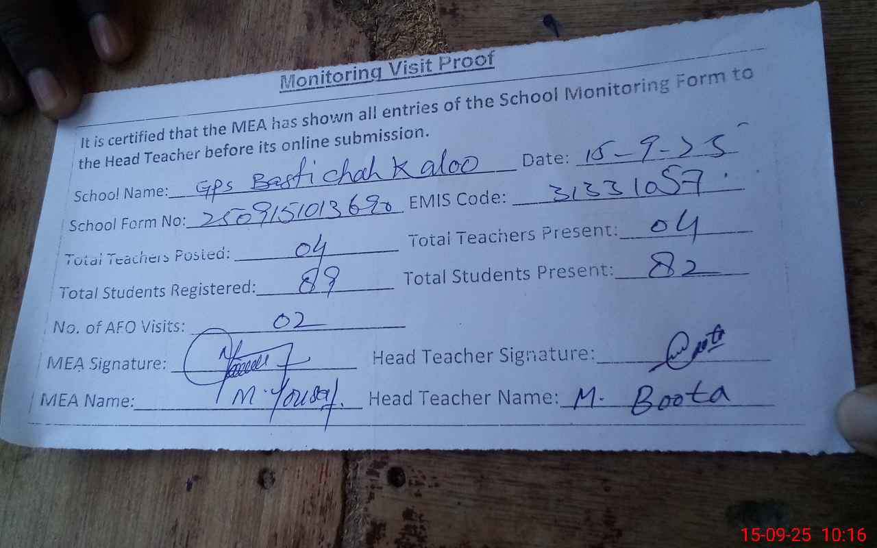 | EMIS Code: 31331057 | Name of School: GPS BASTI CHAH KALOO | |||