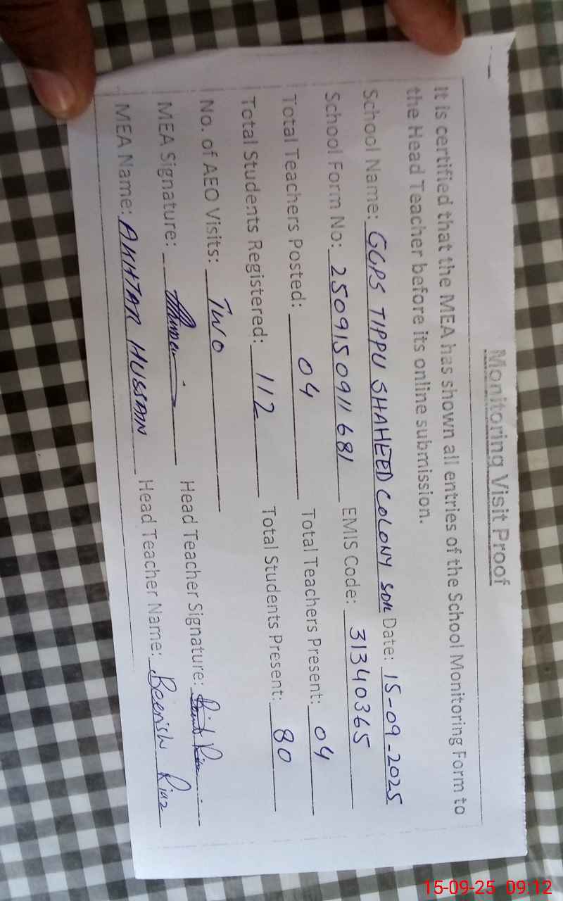| EMIS Code: 31340365 | Name of School: GGPS TIPU SHAHEED COLONY | |||