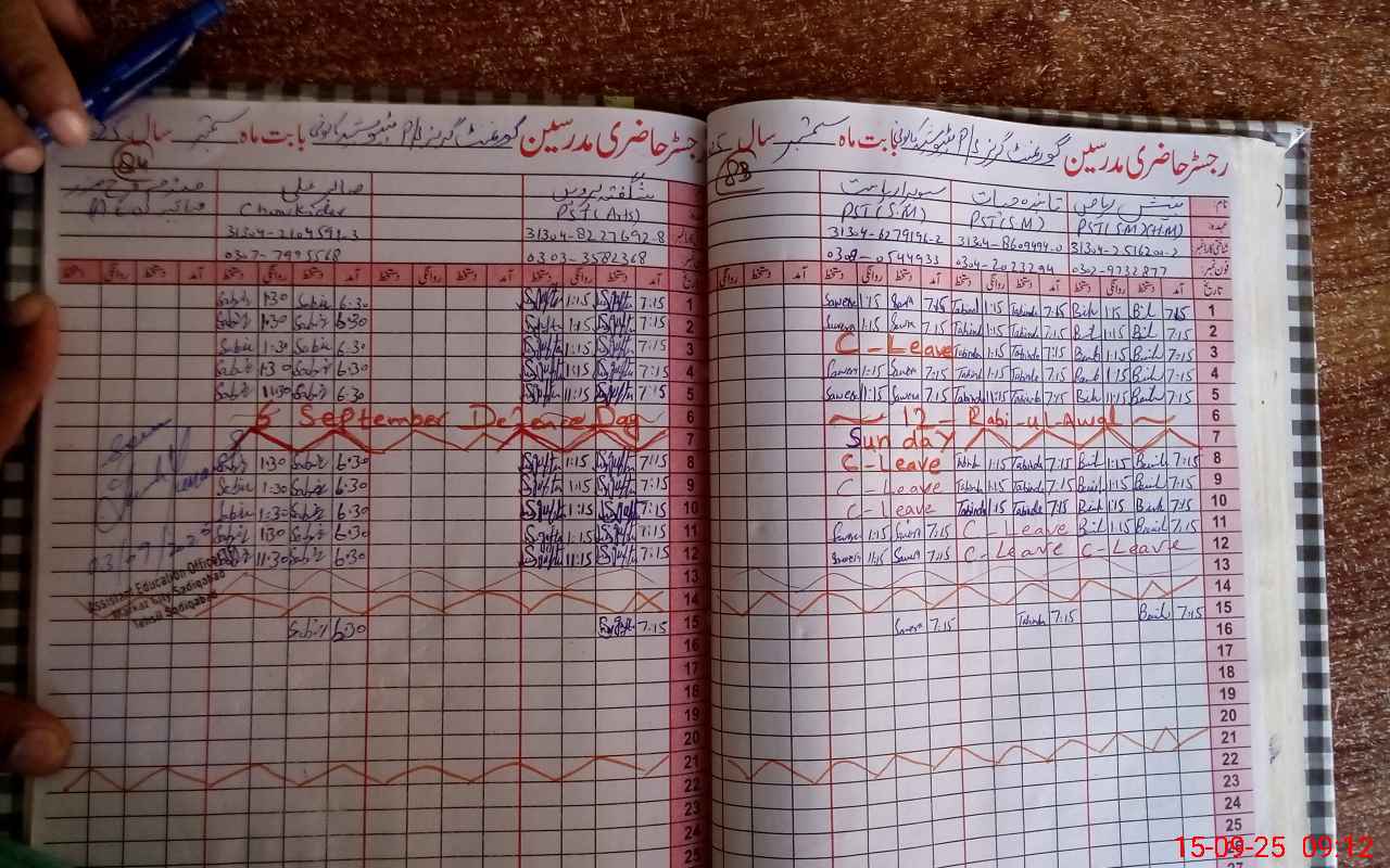| Attendance Register | Head Teacher | MEA with School | Visit Proof |