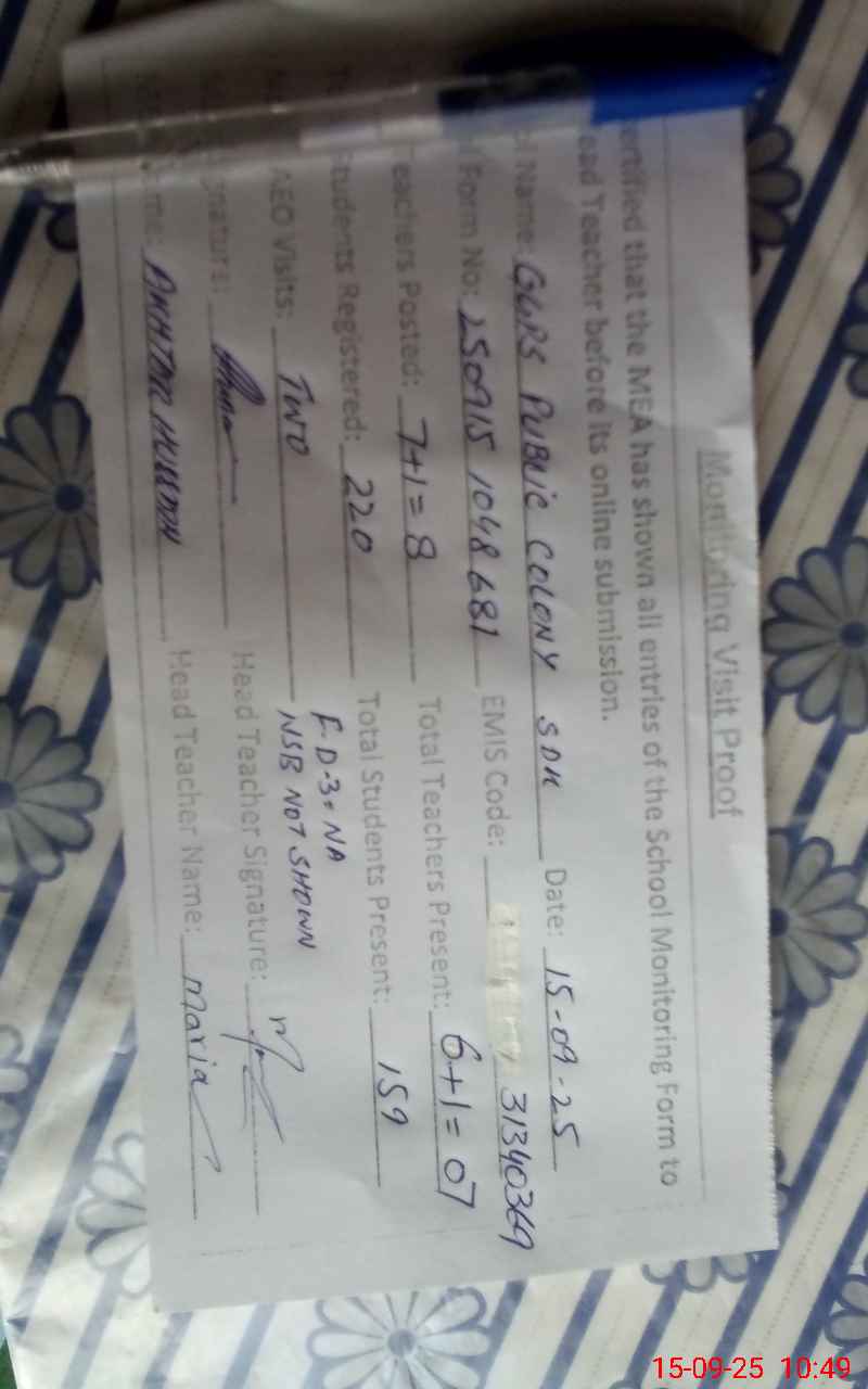 | EMIS Code: 31340369 | Name of School: GGPS PUBLIC COLONY | |||