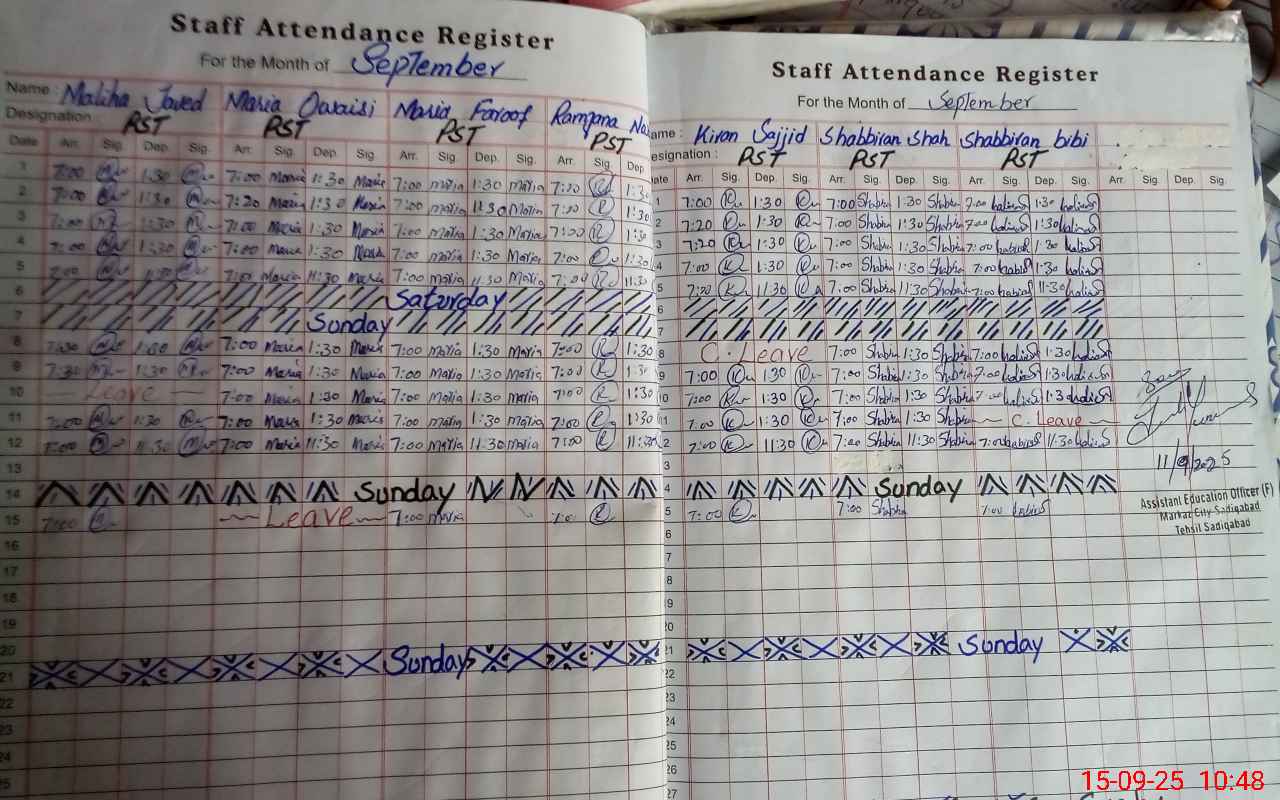 | District: RAHIMYAR KHAN | Tehsil: SADIQABAD | Markaz: CITY SADIQ ABAD-FEMALE | Level: Primary | |