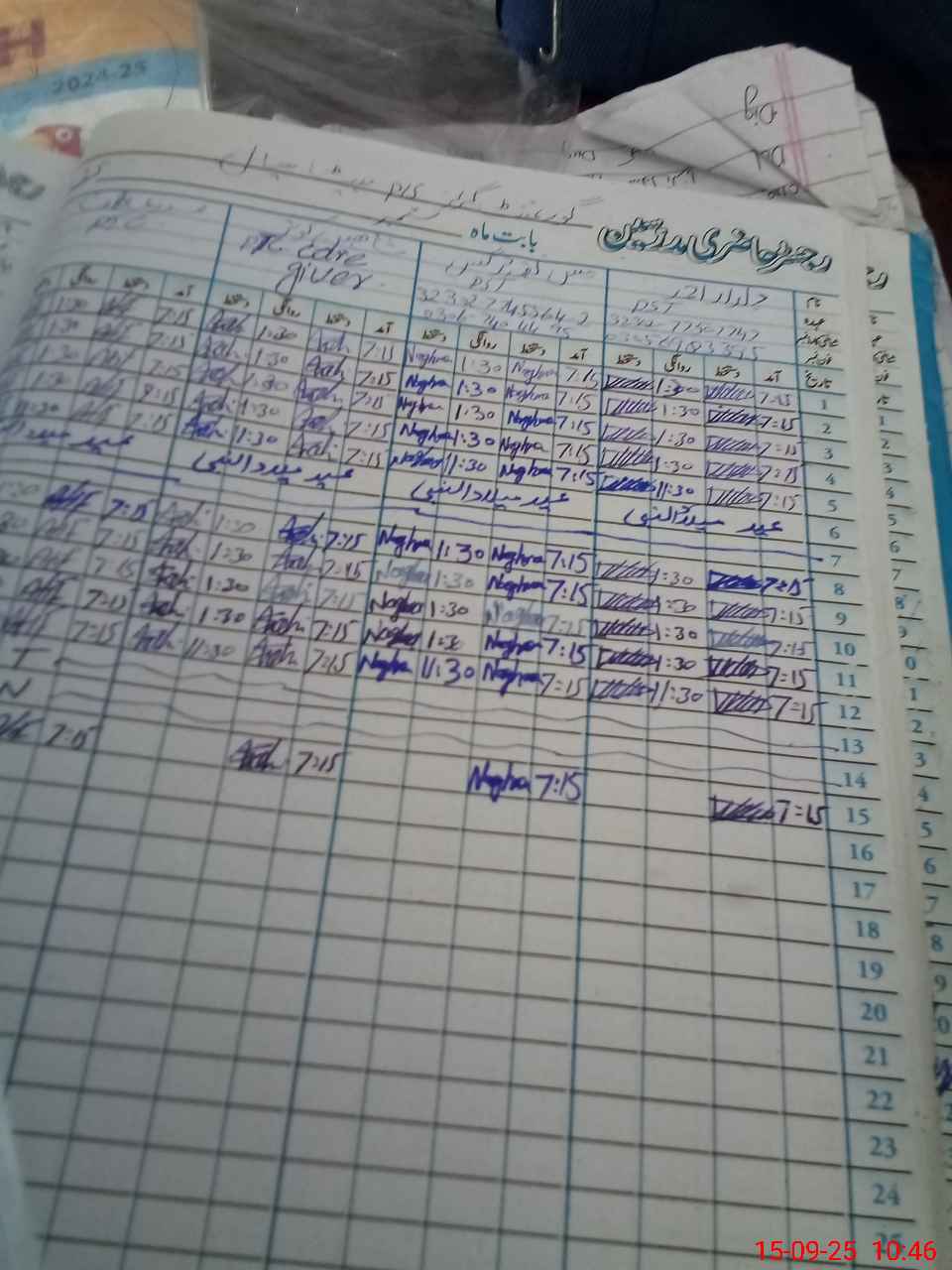 | CNIC | Full Name | Designation | R/C | Absence During Last Calender Month |