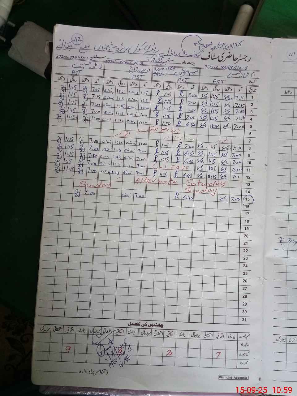 | CNIC | Full Name | Designation | R/C | Absence During Last Calender Month |