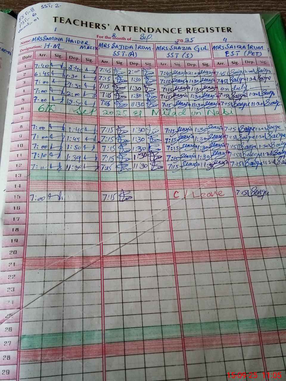 | Name: Sa**** Ir**** Designation: (School Headmaster's/Headmistress's) I/C Headmistress Phone/Cell Number: 03**** |