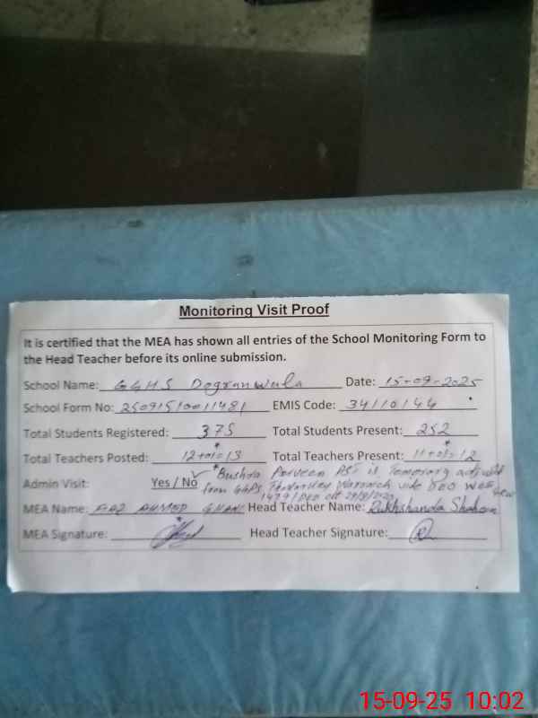 | EMIS Code: 34110144 | Name of School: GGHS DOGRAN WALA | |||
