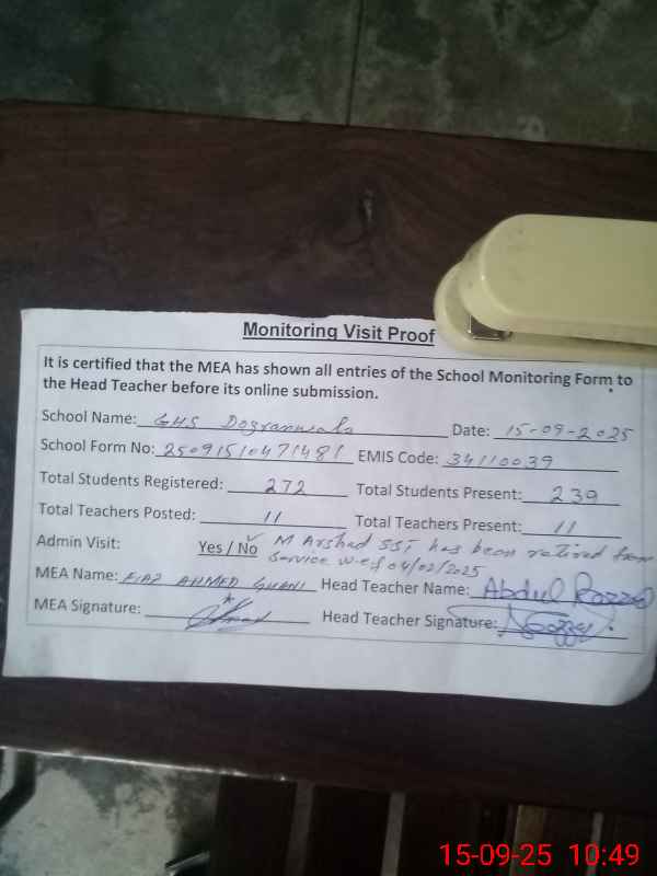 | EMIS Code: 34110039 | Name of School: GHS DOGRAN WALA | |||