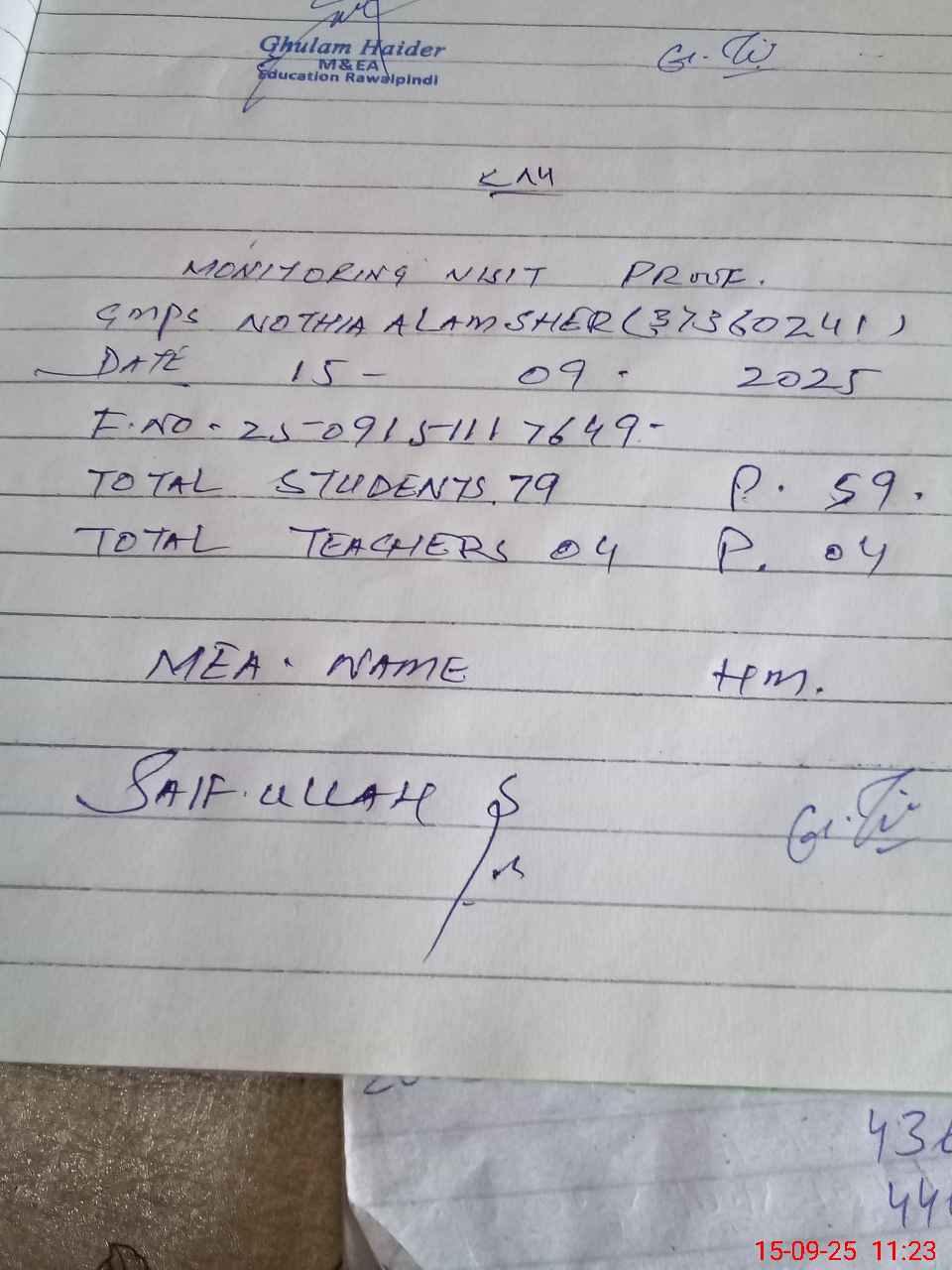 | EMIS Code: 37360241 | Name of School: GMPS NOTHIA ALAM SHER | |||