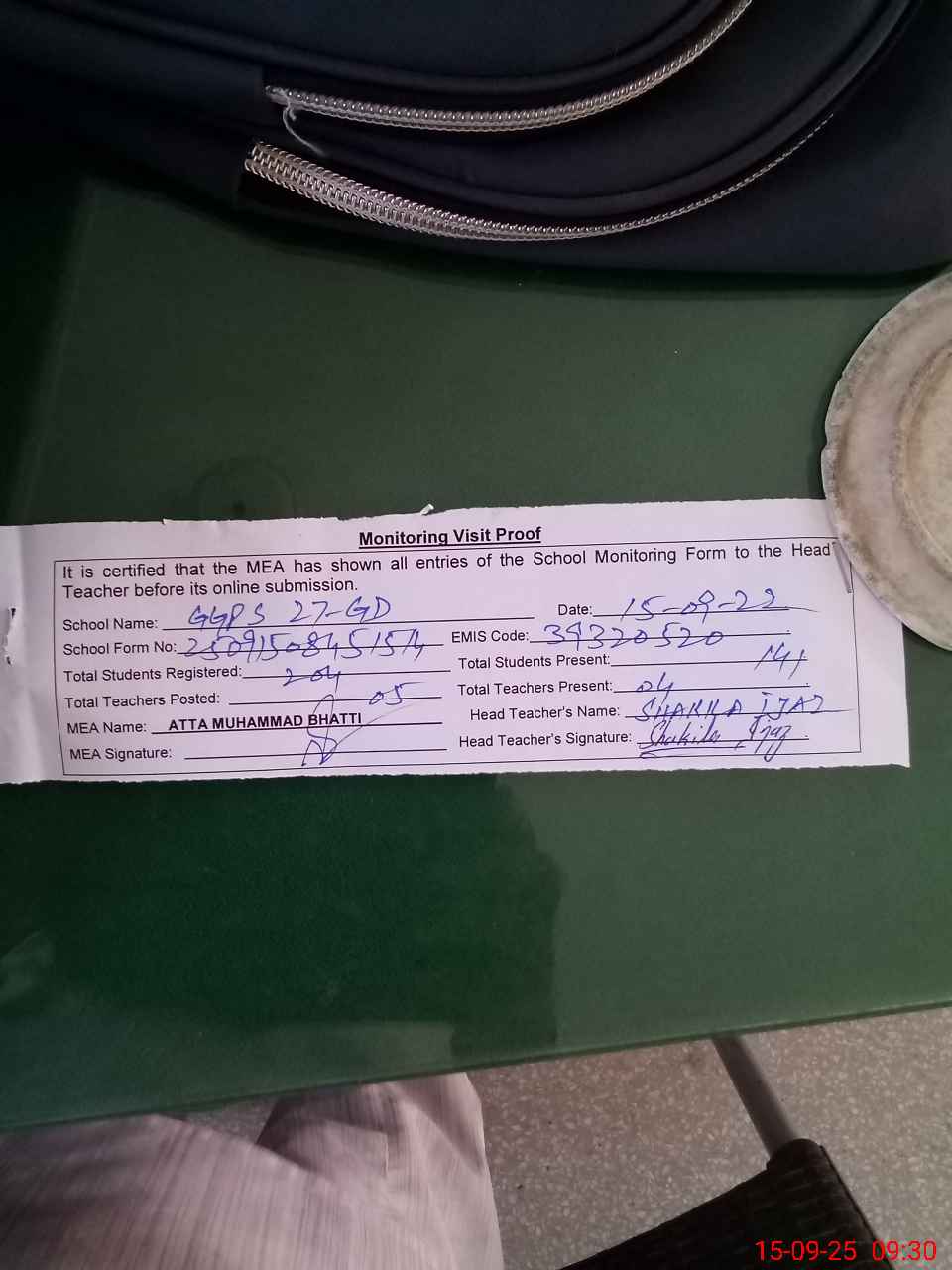 | EMIS Code: 39320520 | Name of School: GGPS 27/G.D | |||