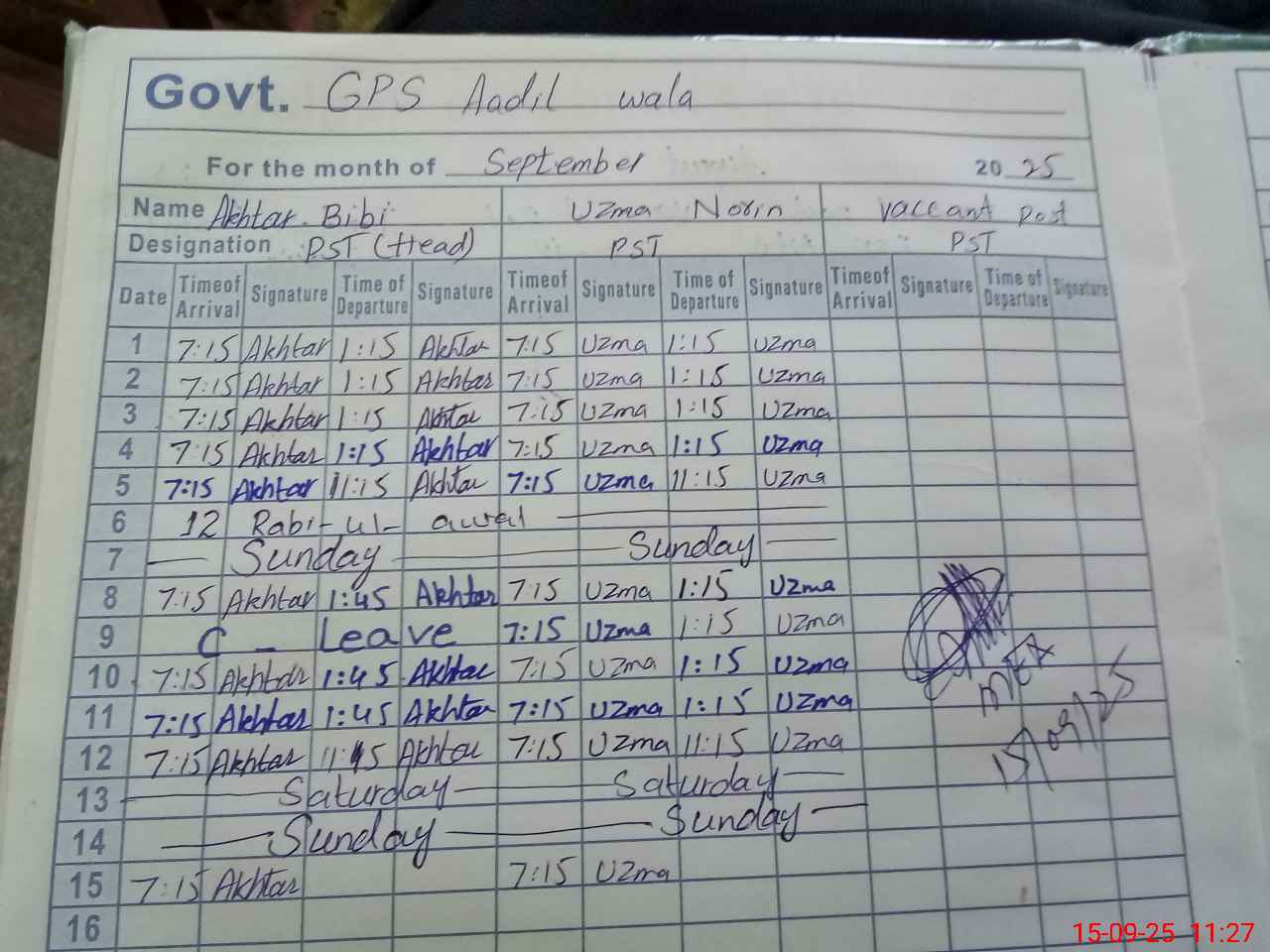 | Name: Ak**** Bi**** Designation: (School Headmaster's/Headmistress's) PST Phone/Cell Number: 03**** |