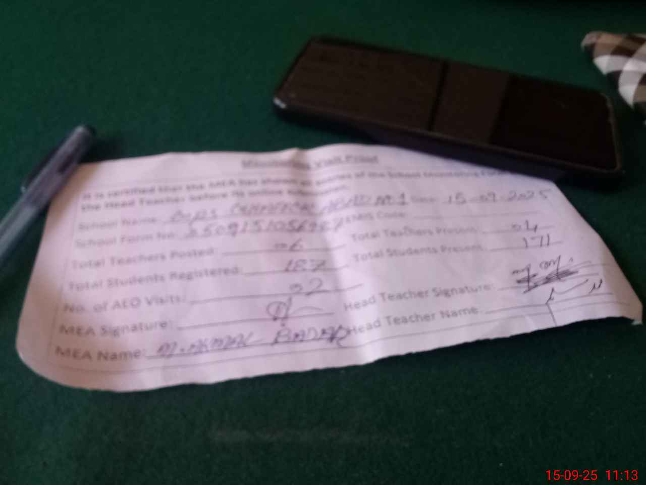 | Monitoring Date: 15-09-2025 | Start Time: 15-09-2025 10:56 AM | End Time: 15-09-2025 11:34 AM | Name of MEA: Mu**** Ak**** Ba**** | |