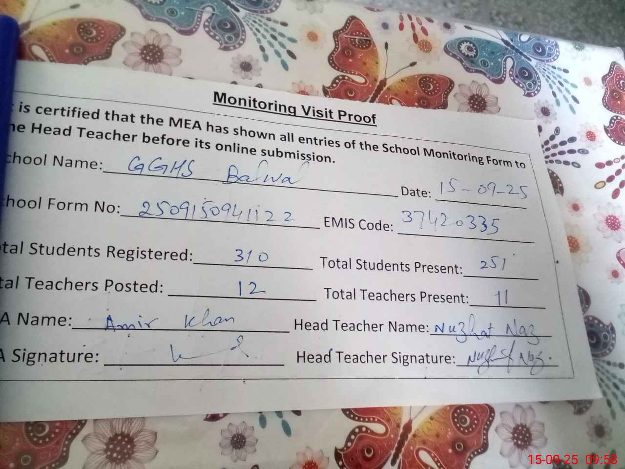 | EMIS Code: 37420335 | Name of School: GGHS BALWAL | |||