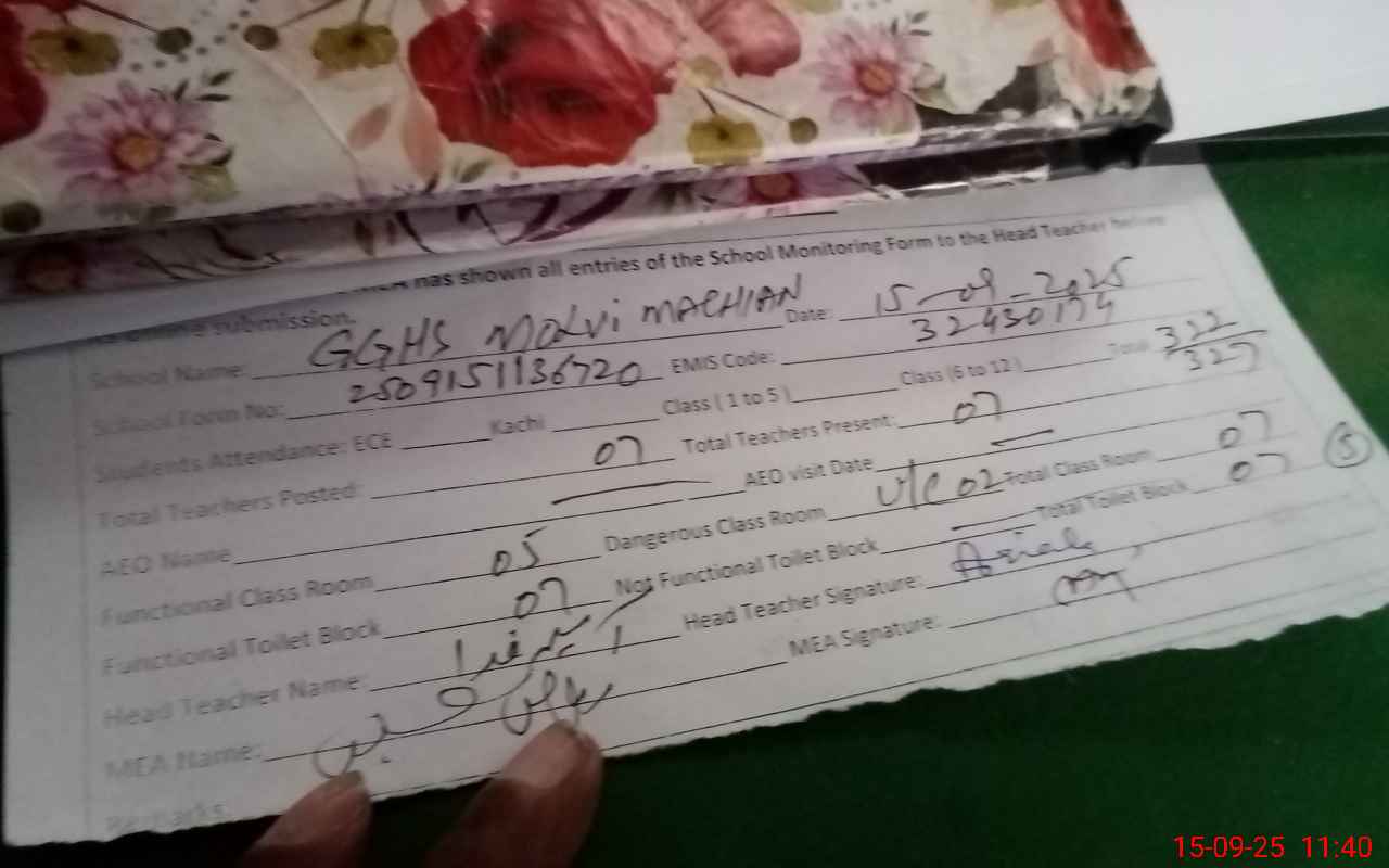| EMIS Code: 32430174 | Name of School: GGHS MOLVI MACHIAN | |||