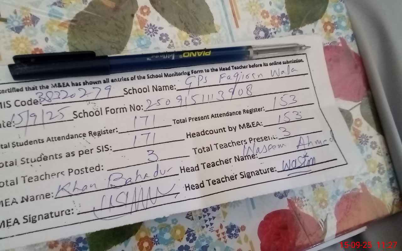 | Attendance Register | Head Teacher | MEA with School | Visit Proof |