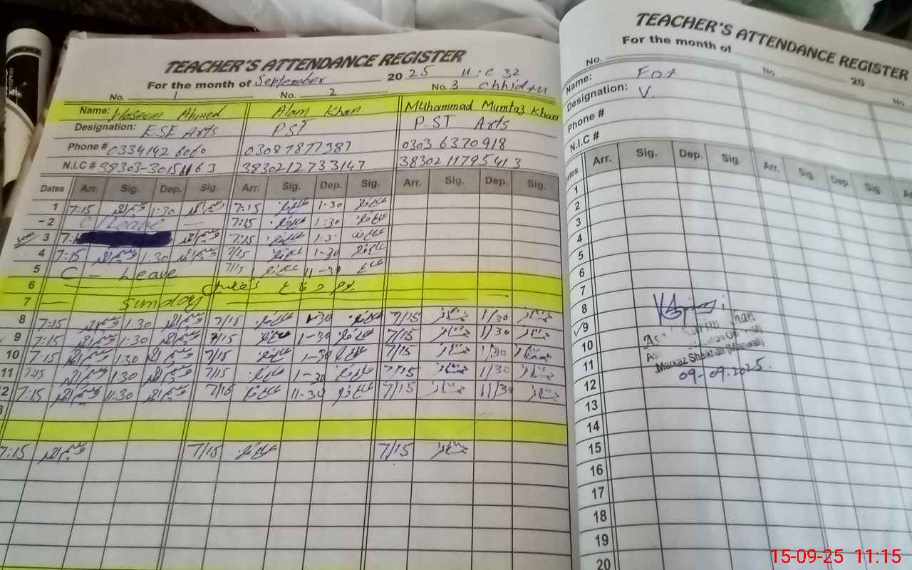 | CNIC | Full Name | Designation | R/C | Absence During Last Calender Month |