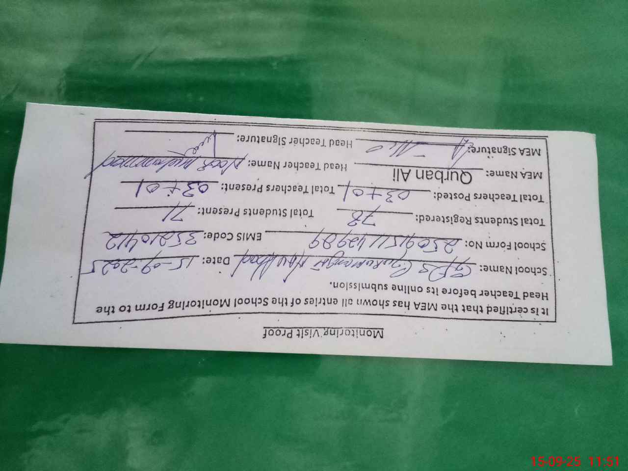| Remarks (Use Separate Page if Required): Administrator visit of Assistant Education Officer in the school month of April 2025 After that not visited the school by concerning Assistant Education Officer till today | |||||