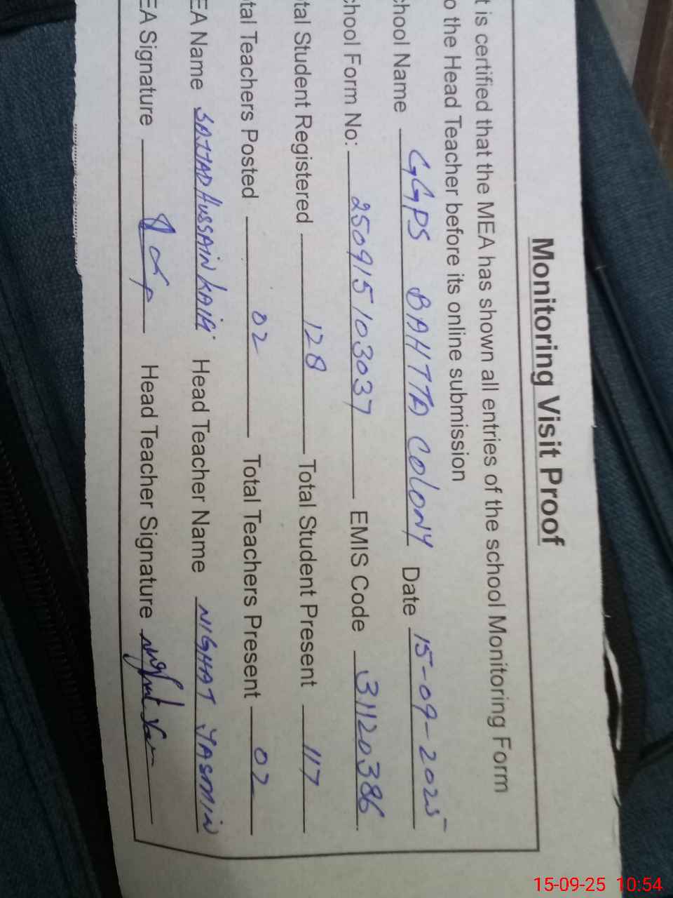 | EMIS Code: 31120386 | Name of School: GGPS BAHTTA COLONY | |||