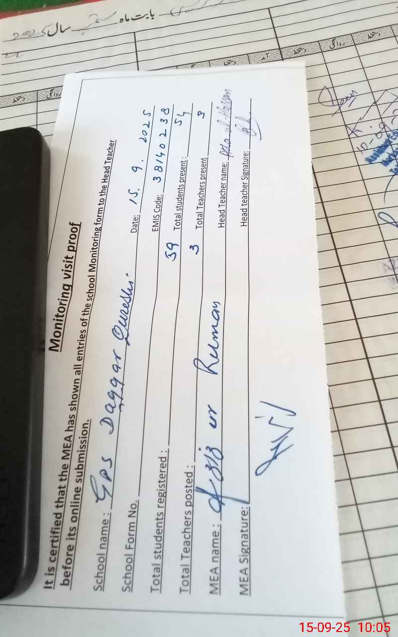 | EMIS Code: 38140238 | Name of School: GPS DAGGAR QURESHI | |||