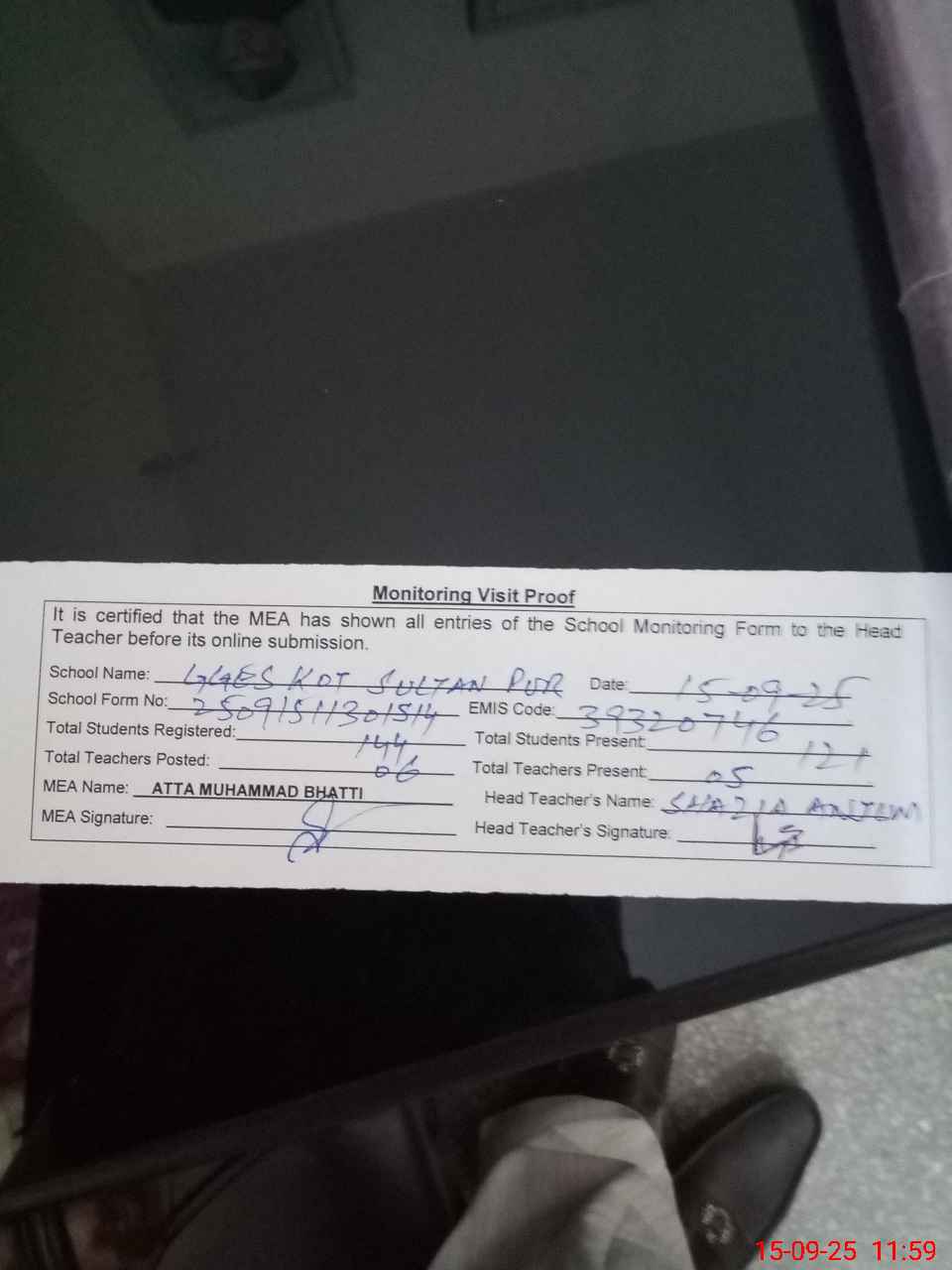 | EMIS Code: 39320746 | Name of School: GGES KOT SULTAN PUR | |||