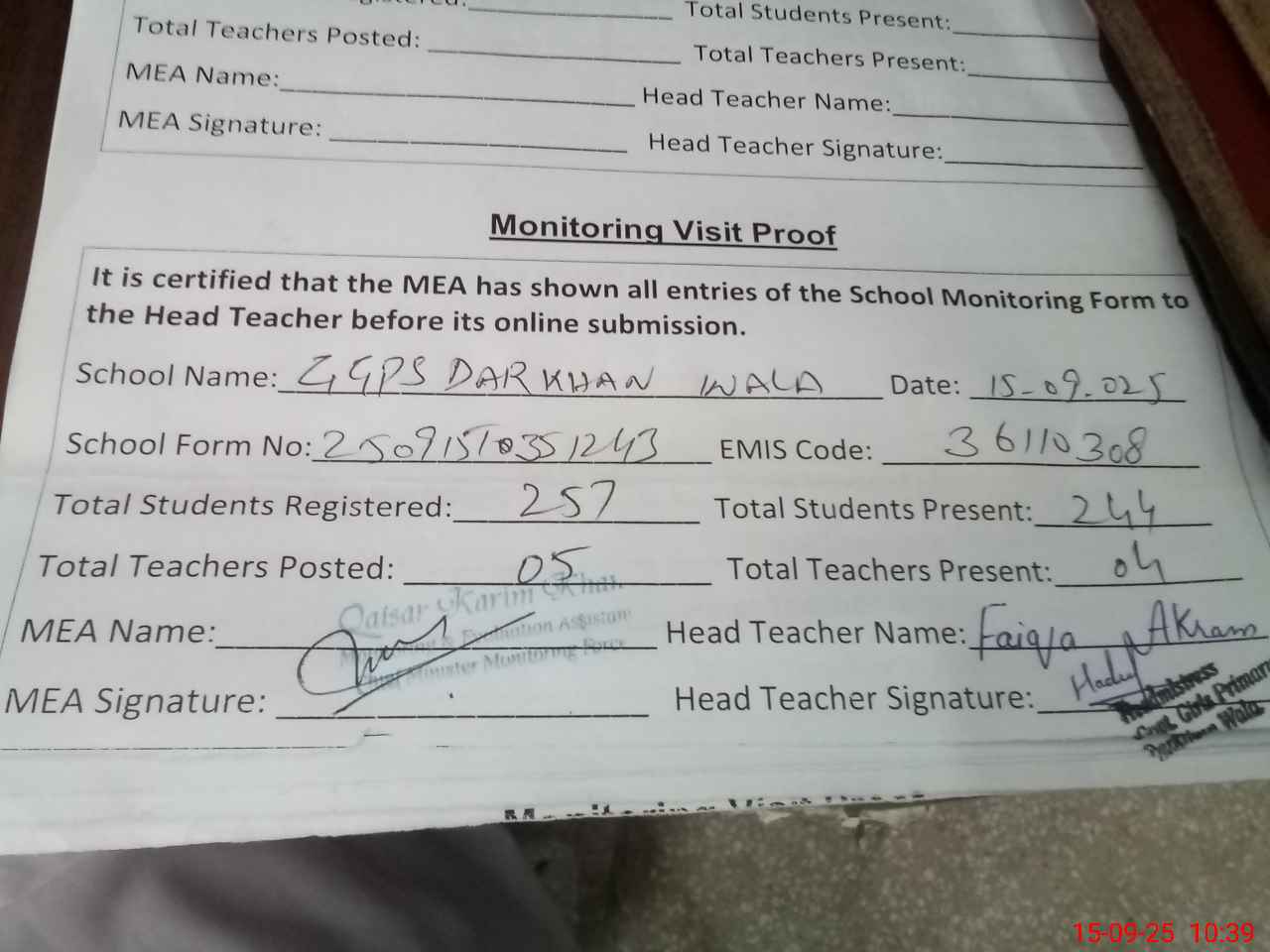 | EMIS Code: 36110308 | Name of School: GGPS DARKHAN WALA SHER SHAH ROAD | |||