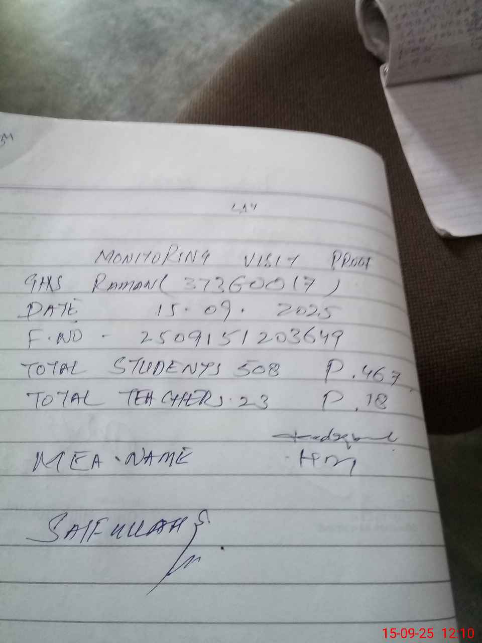 | Monitoring Date: 15-09-2025 | Start Time: 15-09-2025 11:34 AM | End Time: 15-09-2025 12:10 PM | Name of MEA: Sa**** | |
