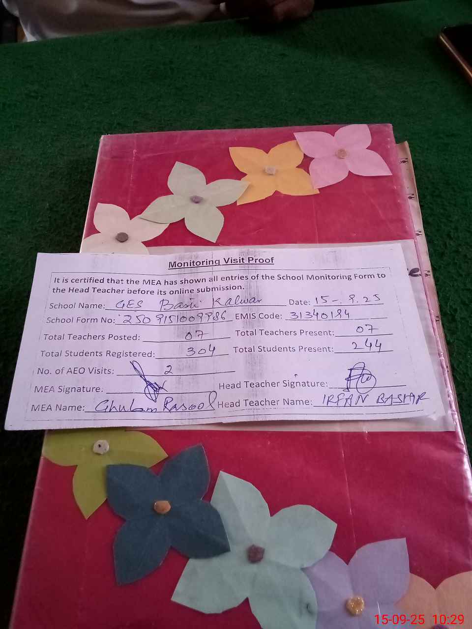 | EMIS Code: 31340194 | Name of School: GES BASTIKALWAR BASTI KALWAR | |||