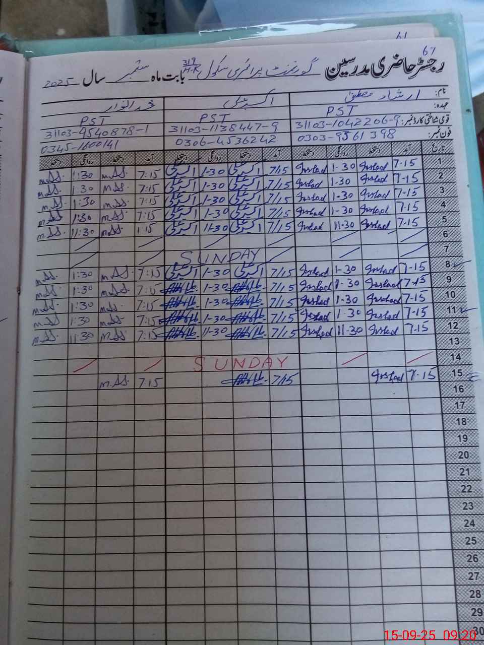 | Name: IR**** MU**** Designation: (School Headmaster's/Headmistress's) ESE Phone/Cell Number: 03**** |