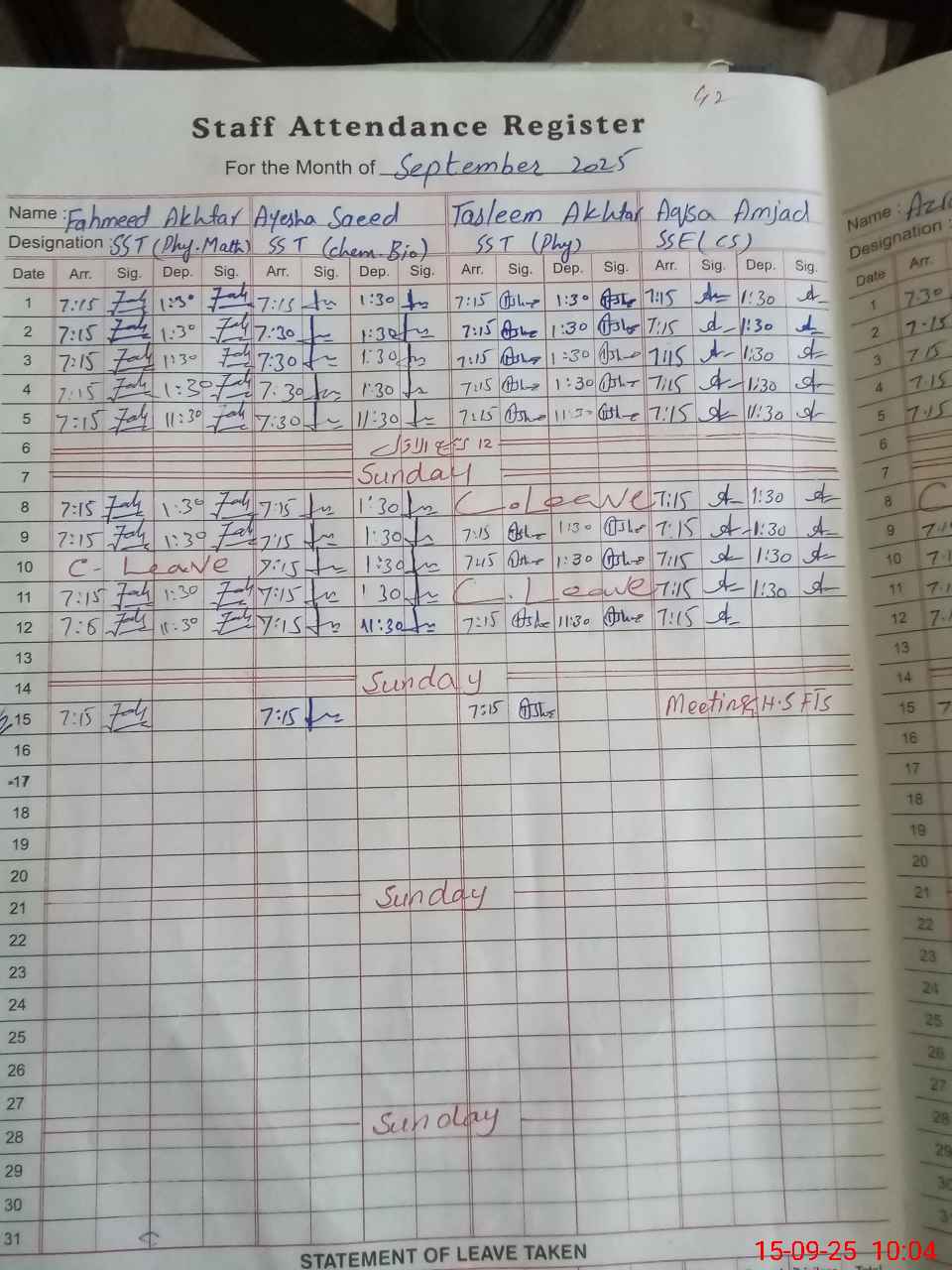 | 31**** | Ay**** Za**** | PST | Regular | 0 | 0 | 0 | 0 | 0 | 0 | 0 | 0 | 0 | Absent (Un-Authorized) |