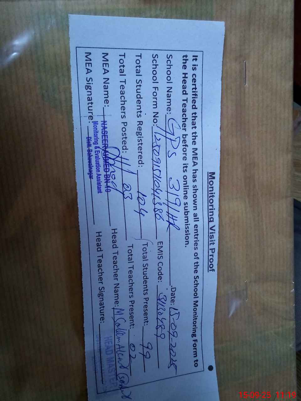 | EMIS Code: 31130489 | Name of School: GPS CHAK NO. 319/HR | |||