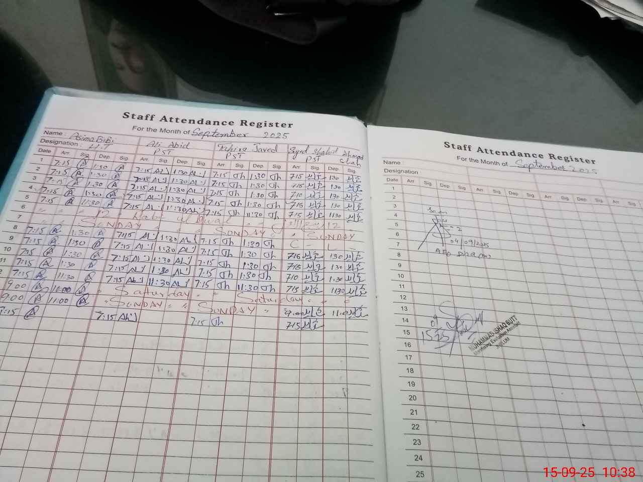 | Monitoring Date: 15-09-2025 | Start Time: 15-09-2025 10:33 AM | End Time: 15-09-2025 11:16 AM | Name of MEA: Mu**** Is**** bu**** | |