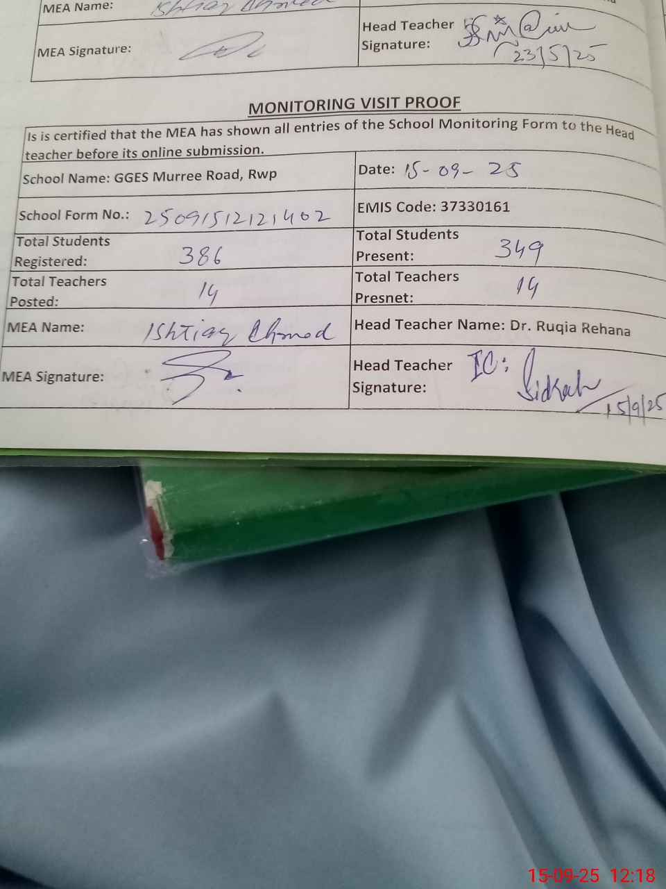 | EMIS Code: 37330161 | Name of School: GGES MURREE ROAD RWP | |||