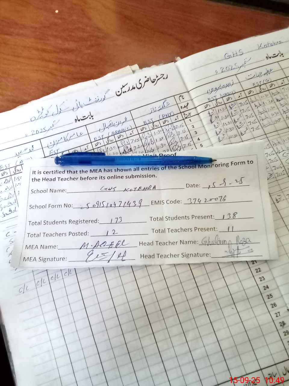 | EMIS Code: 37420076 | Name of School: GHS KOTEHRA | |||