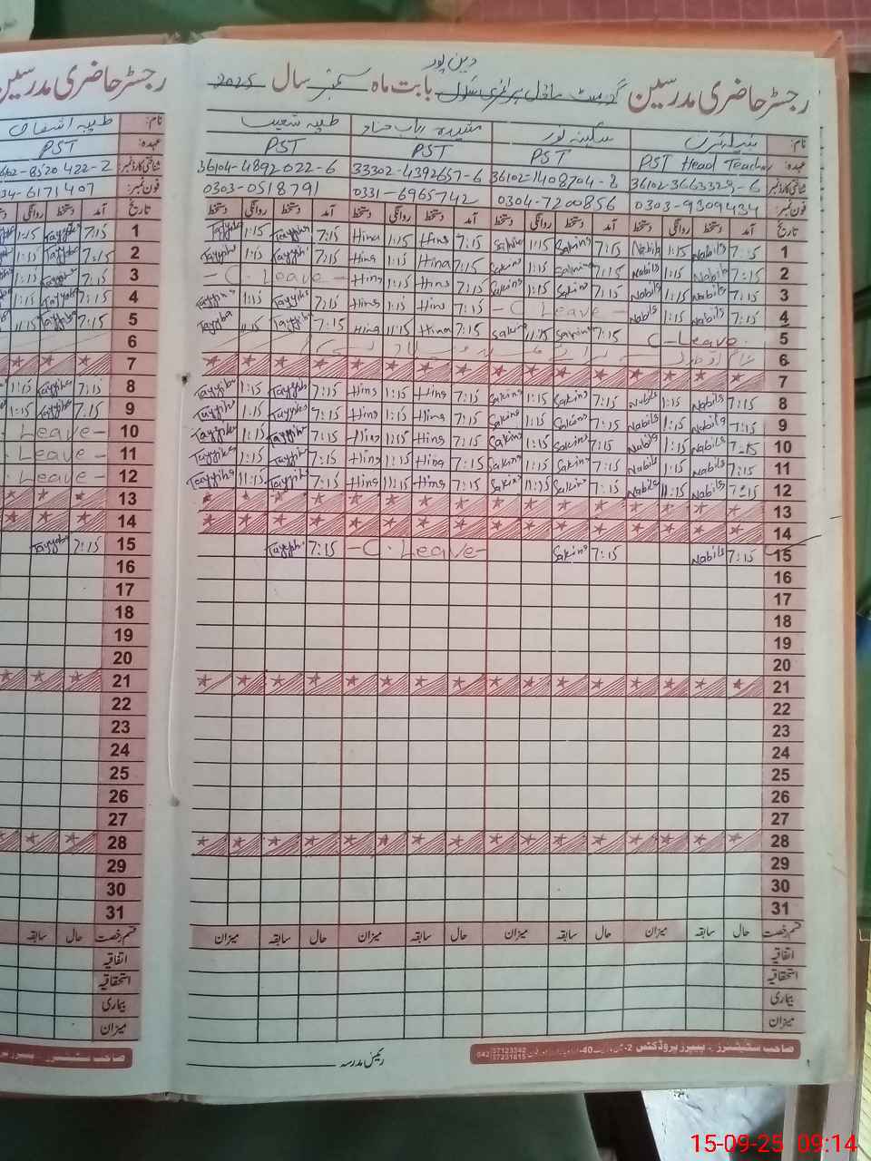 | CNIC | Full Name | Designation | R/C | Absence During Last Calender Month |