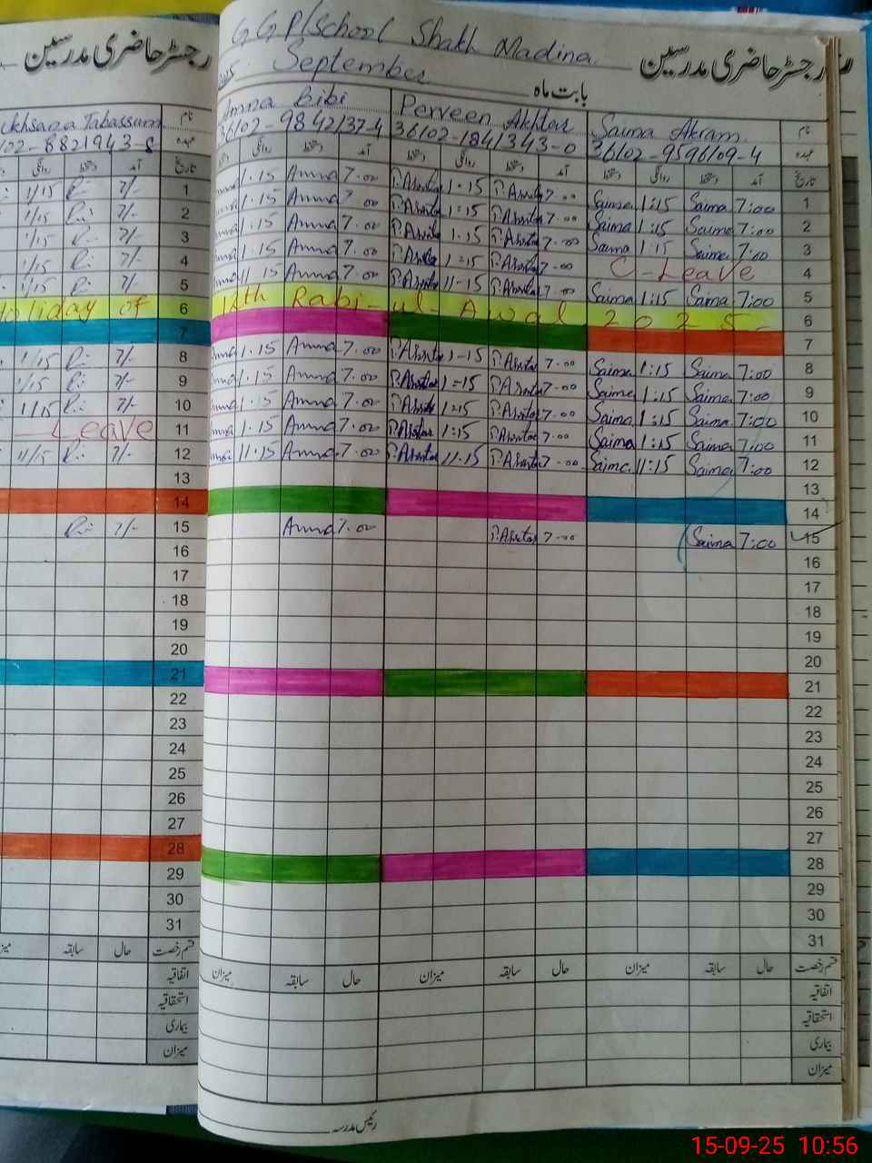 | CNIC | Full Name | Designation | R/C | Absence During Last Calender Month |
