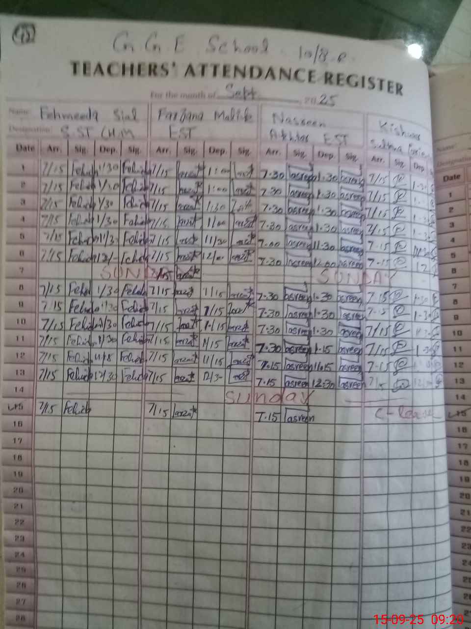 | Name: Fa**** Ma**** Designation: (School Headmaster's/Headmistress's) EST Phone/Cell Number: 03**** |