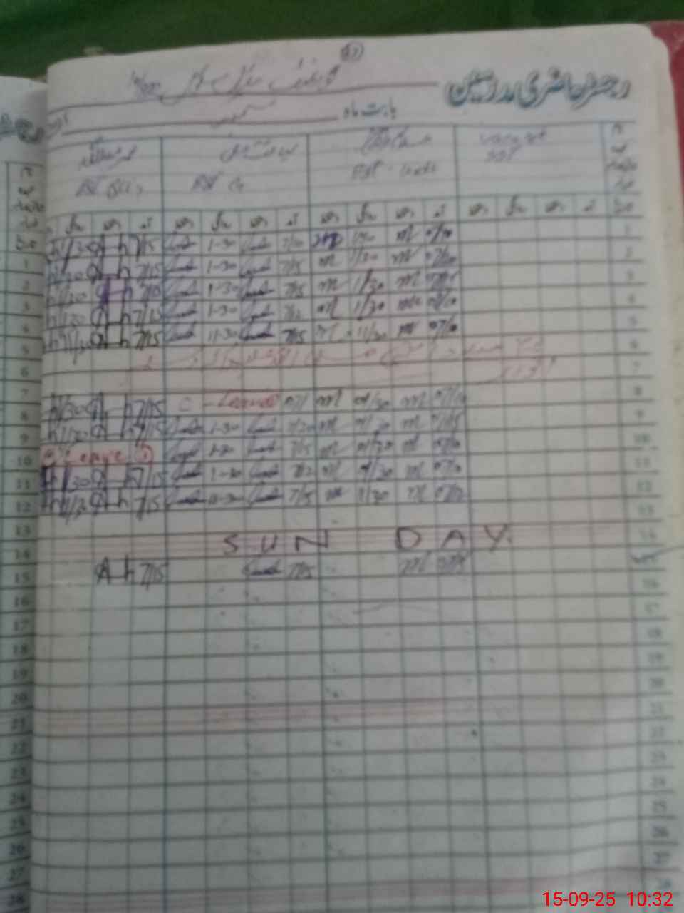 | CNIC | Full Name | Designation | R/C | Absence During Last Calender Month |