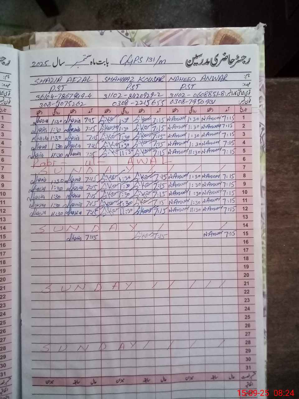 | Name: Sh**** Af**** Designation: (School Headmaster's/Headmistress's) PST Phone/Cell Number: 03**** |