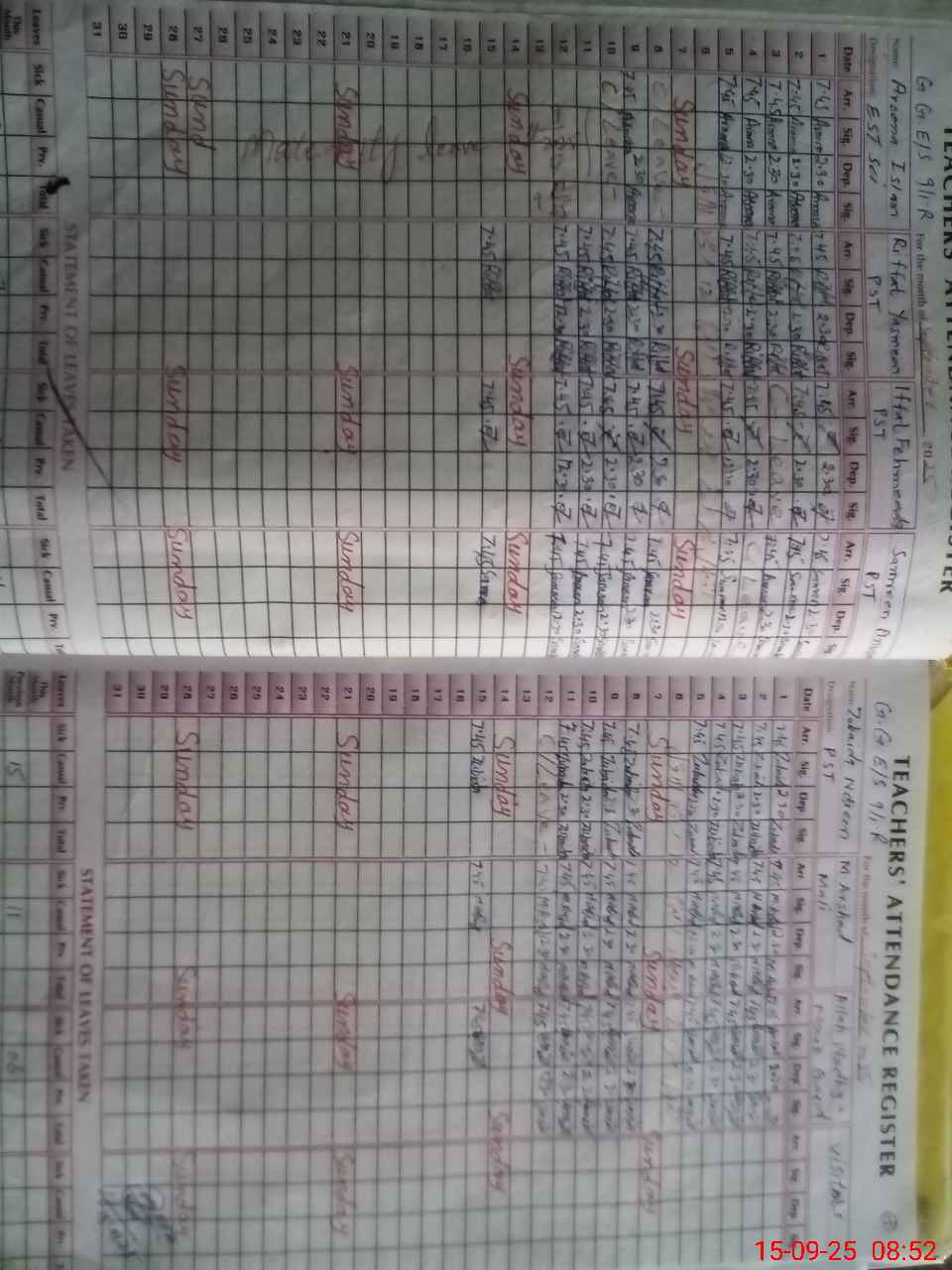 | Monitoring Date: 15-09-2025 | Start Time: 15-09-2025 08:43 AM | End Time: 15-09-2025 09:23 AM | Name of MEA: MU**** AH**** | |