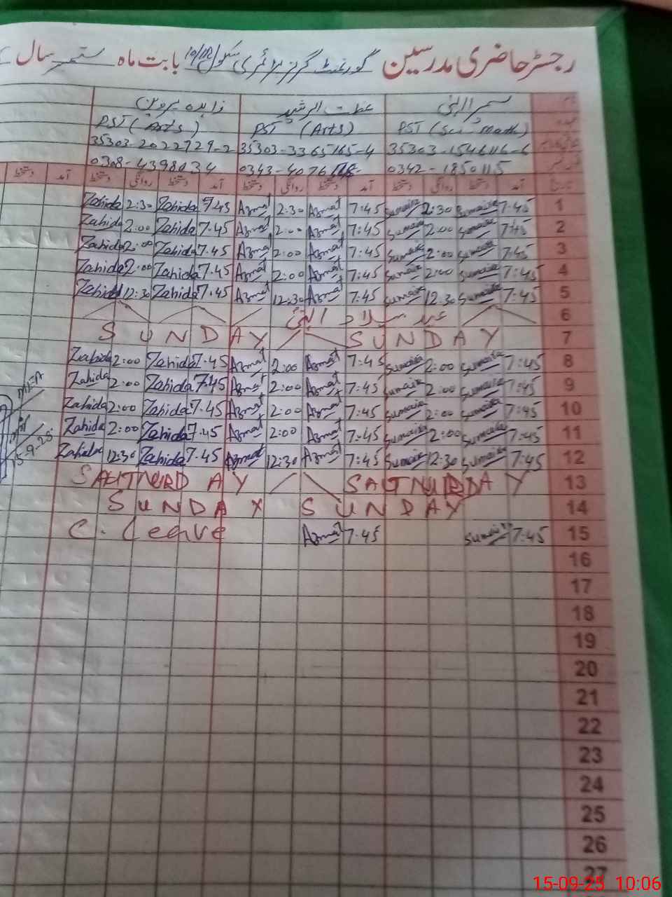 | 35**** | Za**** Pe**** | PST | Regular | 1 | 0 | 0 | 0 | 0 | 0 | 0 | 0 | 1 | Casual |
