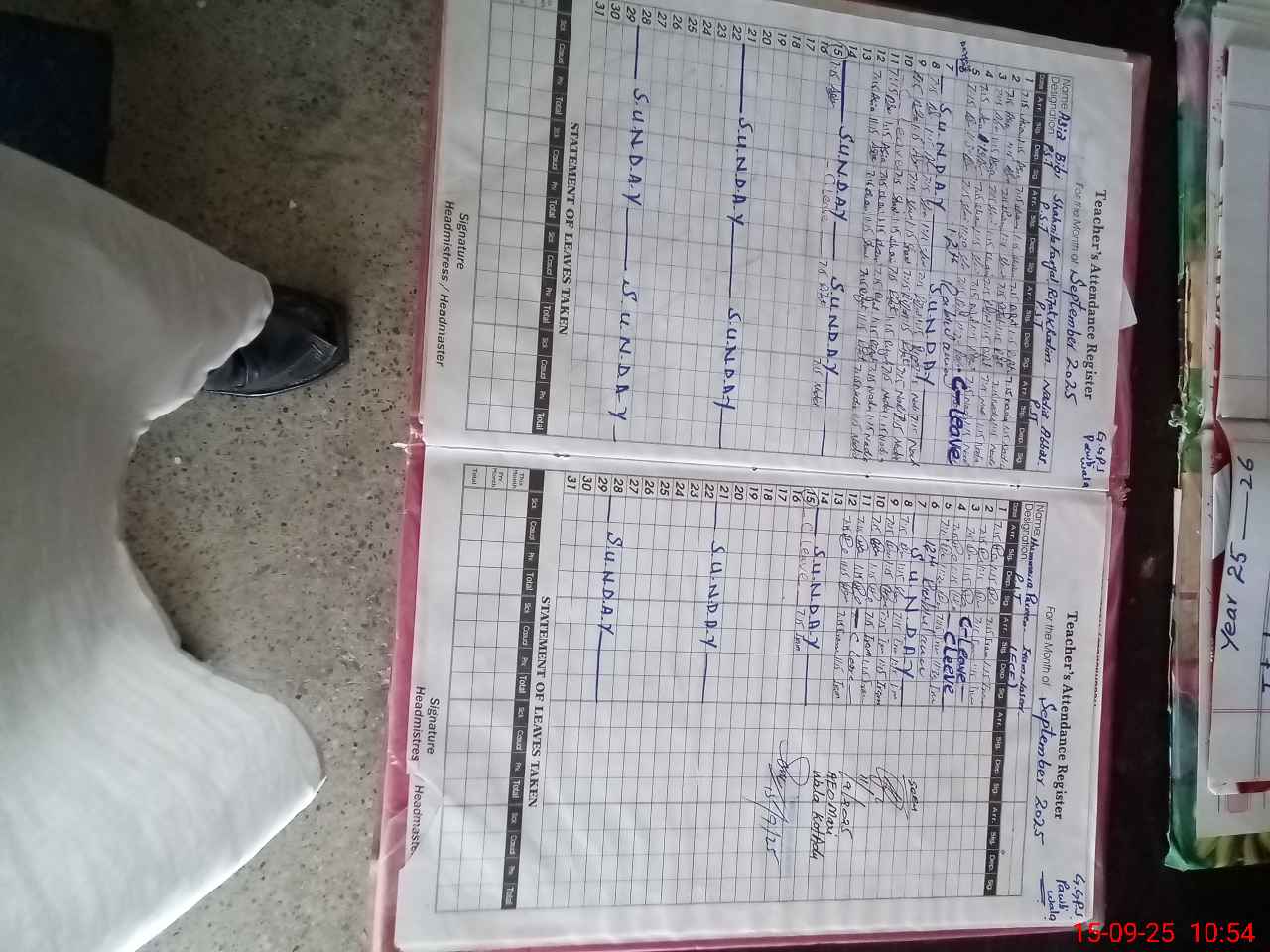 | Leave | Duty | Absent | Maternity | Medical | Ex- Pak |