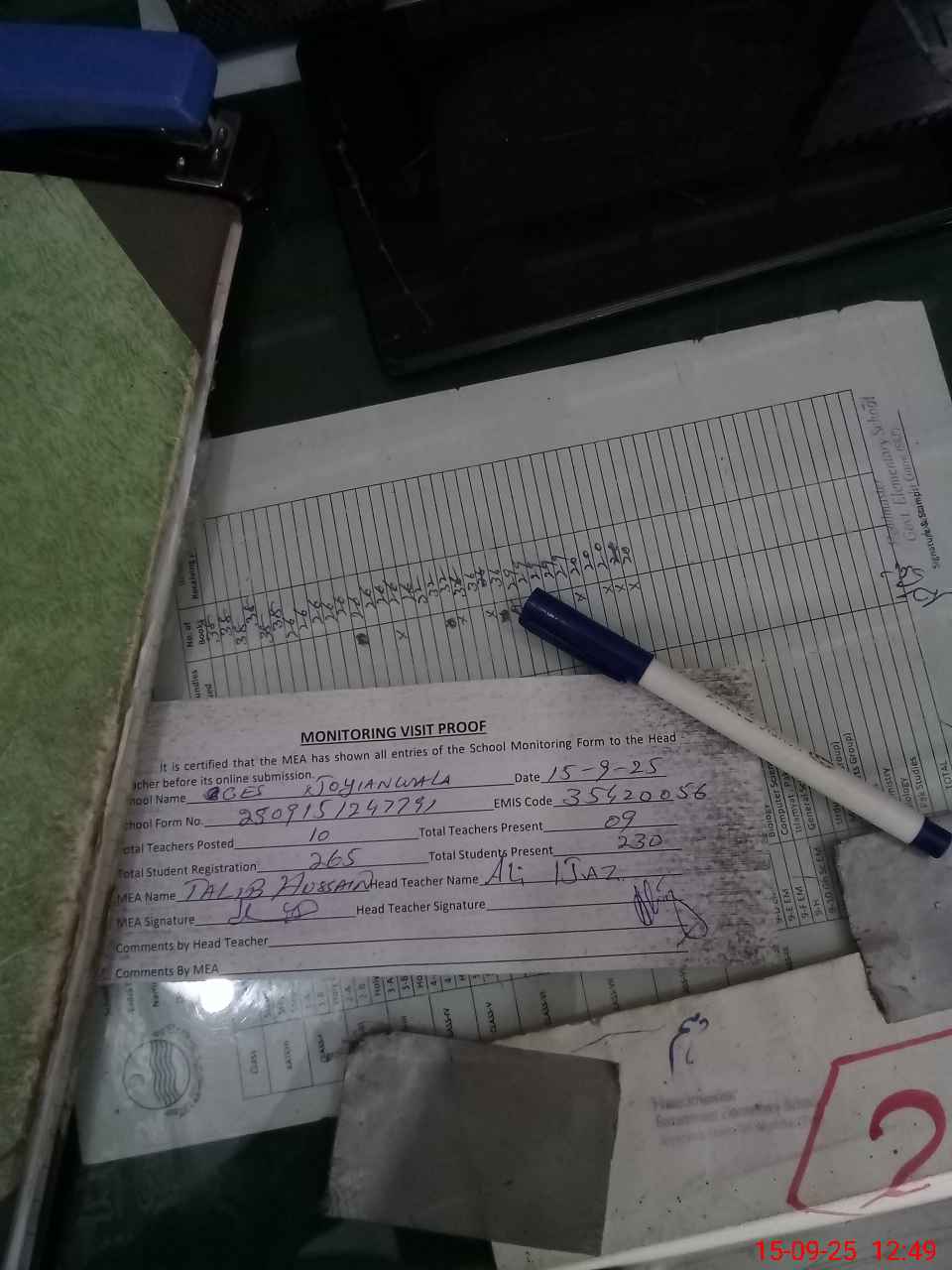 | Attendance Register | Head Teacher | MEA with School | Visit Proof |
