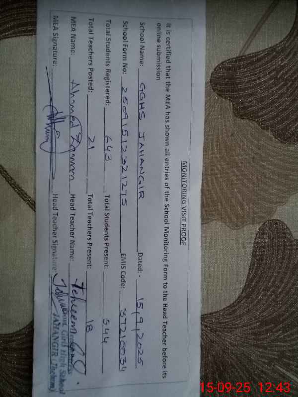 | EMIS Code: 37210034 | Name of School: GGHS JAHANGIR | |||