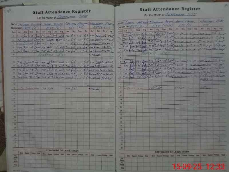 | CNIC | Full Name | Designation | R/C | Absence During Last Calender Month |