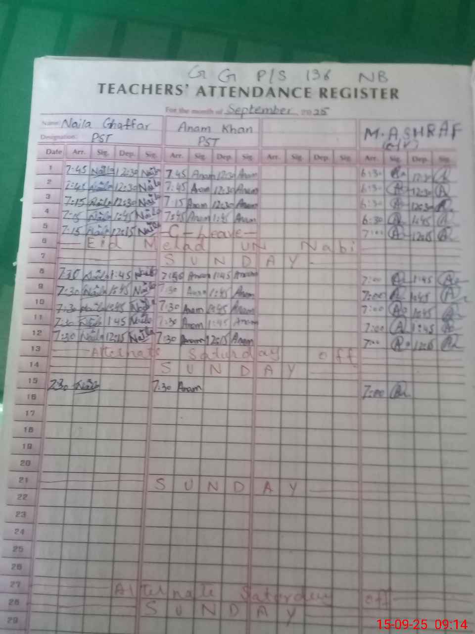 | Name: NA**** GH**** Designation: (School Headmaster's/Headmistress's) PST (SCI,MATH) Phone/Cell Number: 03**** |