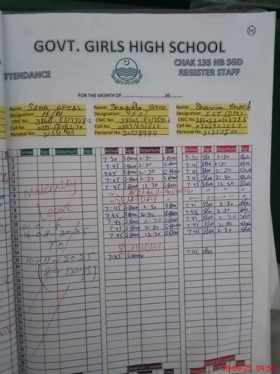 | Name: Sa**** Af**** Designation: (School Headmaster's/Headmistress's) SST (SCI) Phone/Cell Number: 03**** |