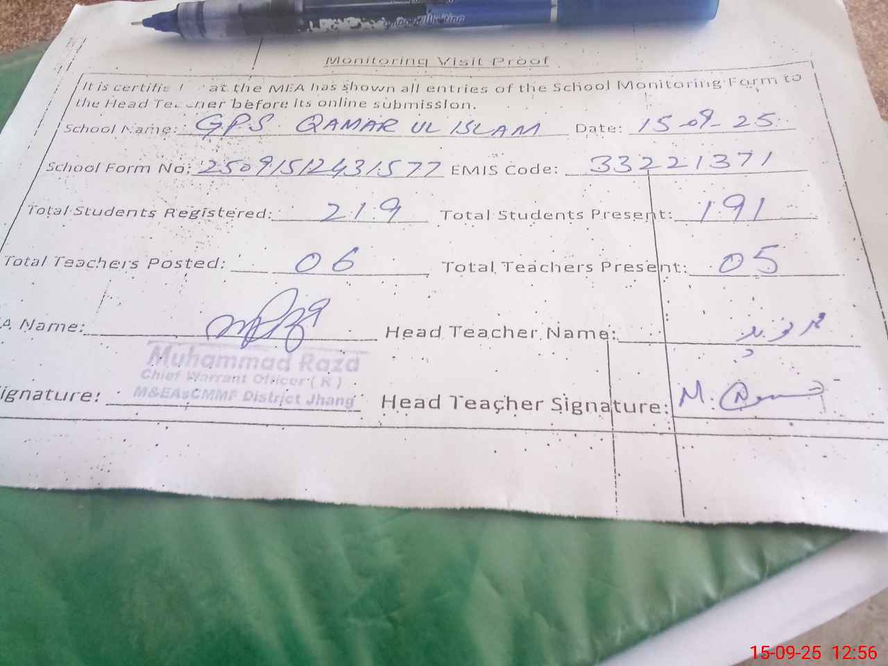 | EMIS Code: 33221371 | Name of School: GPS QAMAR-UL-ISLAM | |||