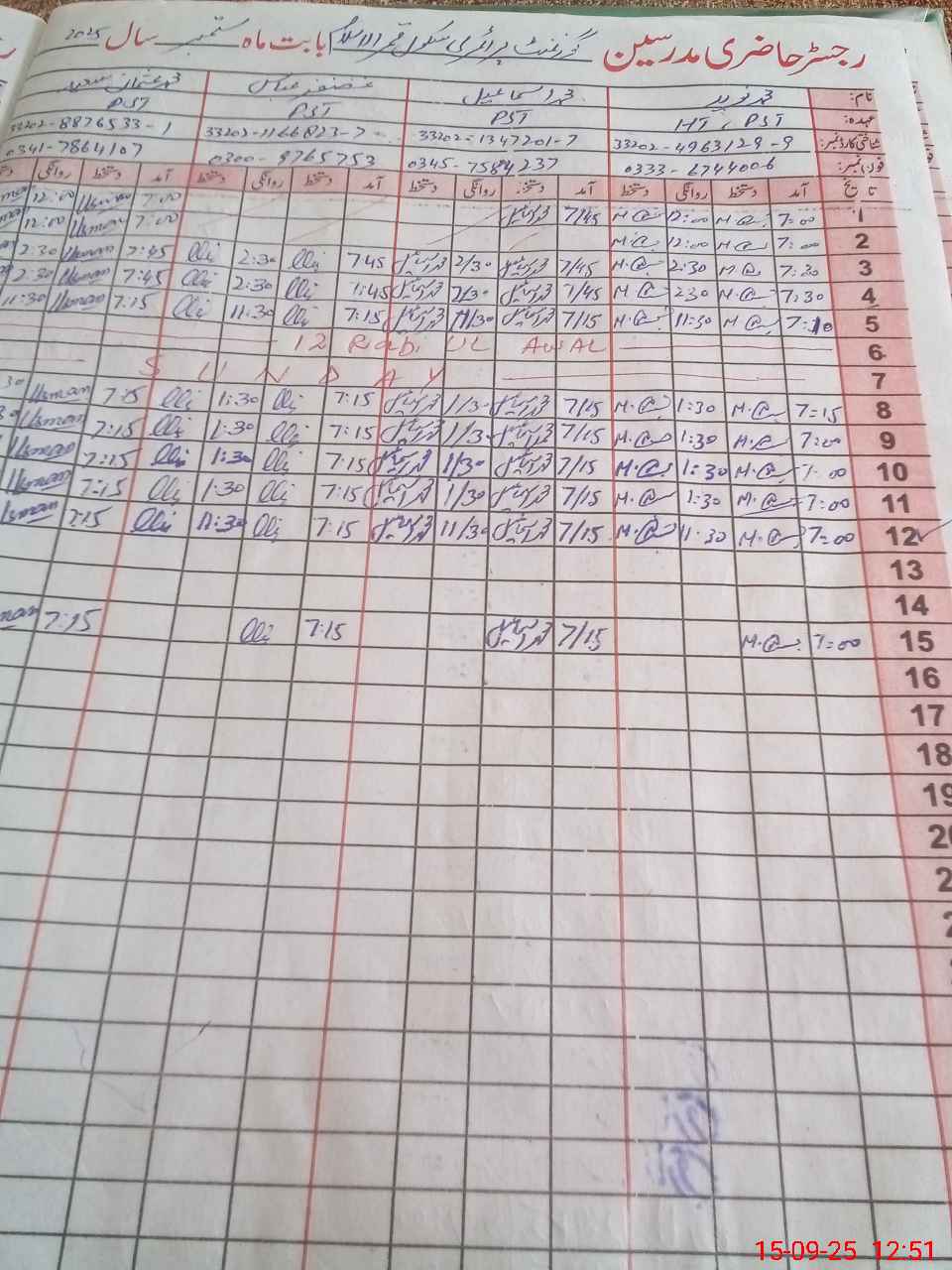 | Name: MU**** NA**** Designation: (School Headmaster's/Headmistress's) PST Phone/Cell Number: 03**** |