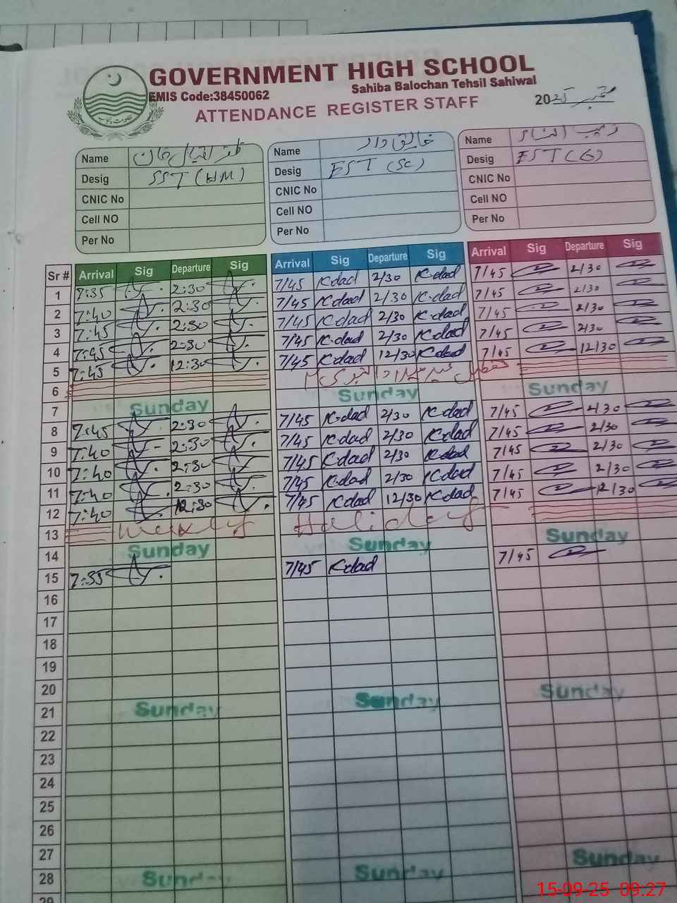 | Name: ZA**** IQ**** Designation: (School Headmaster's/Headmistress's) S.S.T.(Arts) Phone/Cell Number: 03**** |