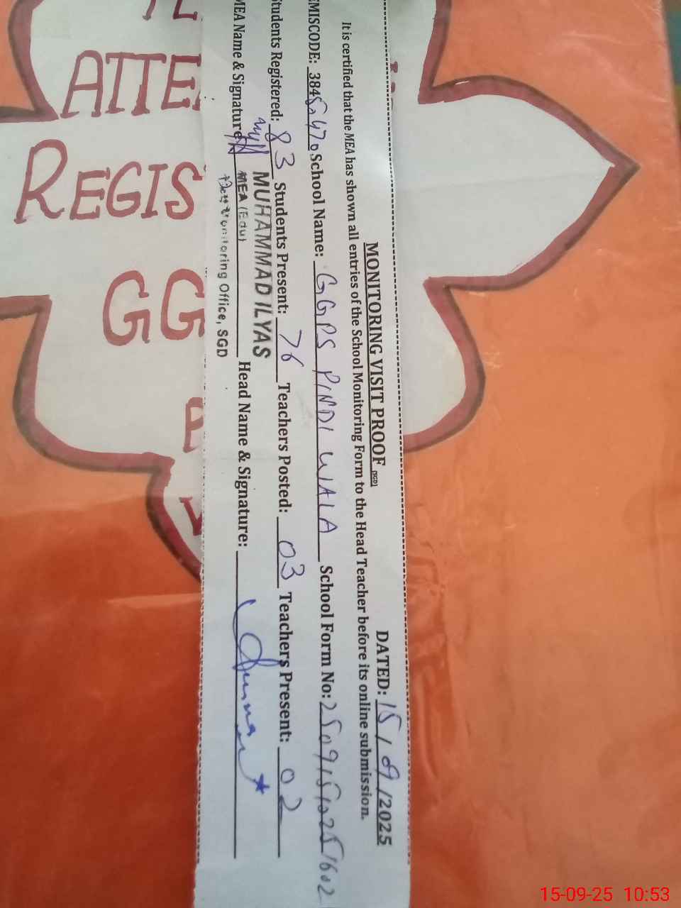 | EMIS Code: 38450470 | Name of School: GGPS PINDI WALA | |||