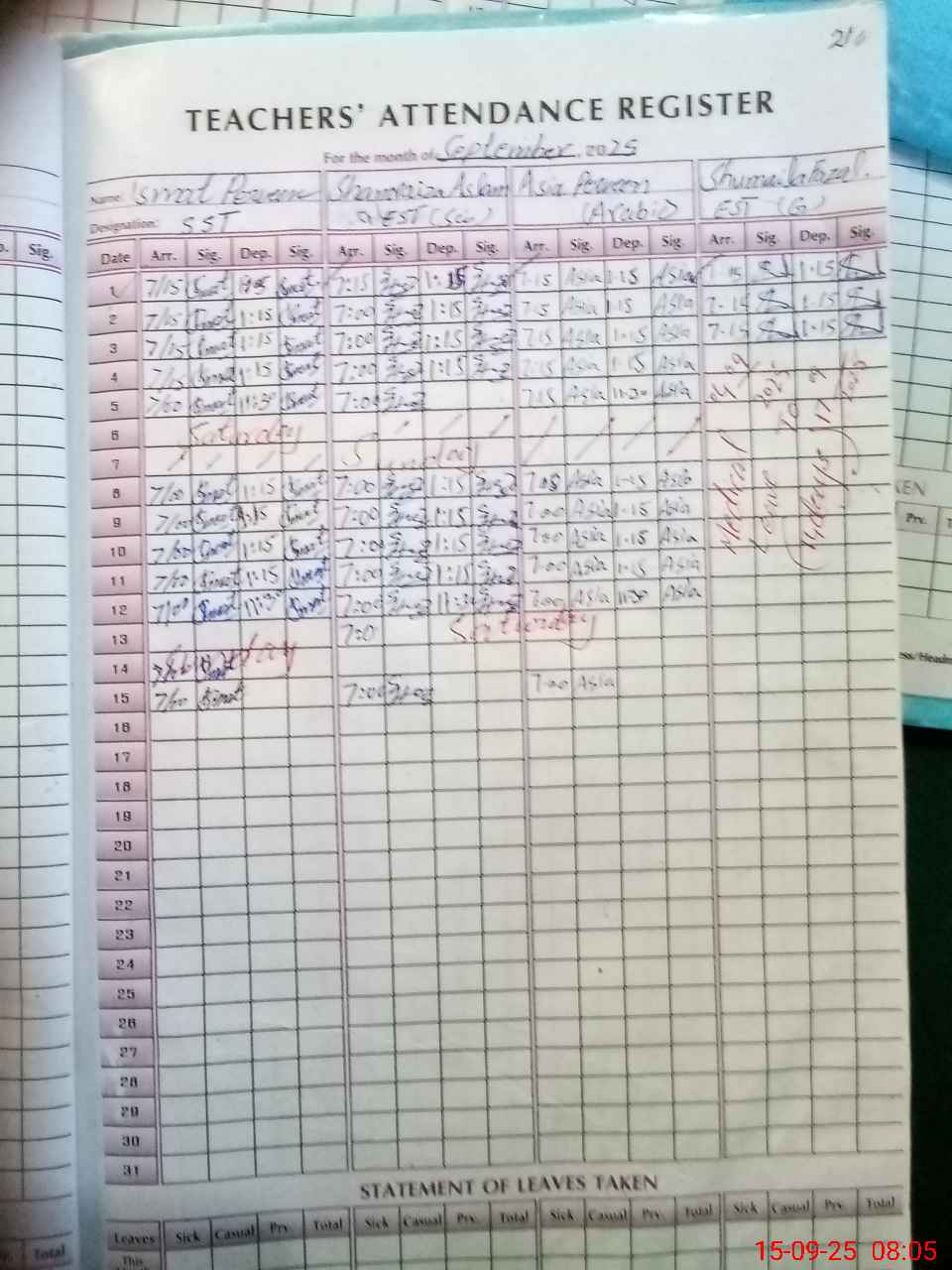Leave Type | Remarks for Today (Leave,Training, Exam,Absent,Late, Other Duty) |