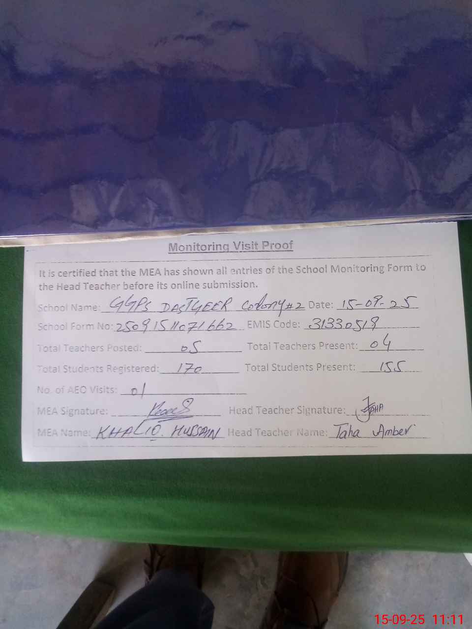 | EMIS Code: 31330519 | Name of School: GGPS DASTGEER COLONY NO. 2 | |||